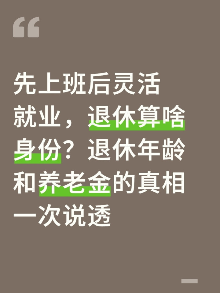 “在单位交了几年社保,后来自己单干,以灵活就业身份接着交。眼看快退休了,我这种情况到底算哪种‘身份’?多少岁能退?养老金会不会比别人少?”——这是许多有过“单位+灵活就业”混合工作经历的朋友,在临近退休时共同的困惑。